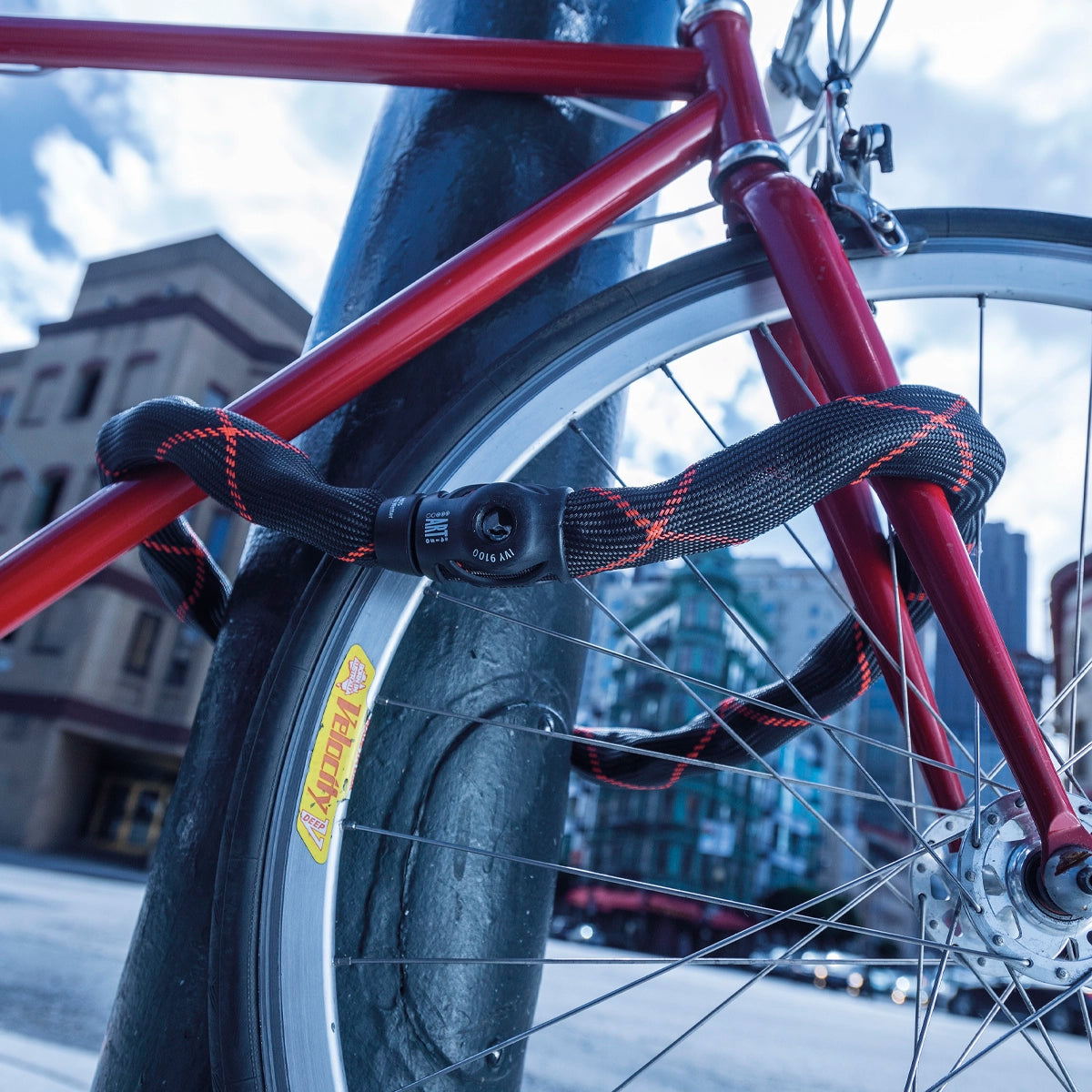 La cadena cuenta con un recubrimiento textil extra suave para evitar daños en la pintura de tu bicicleta. -